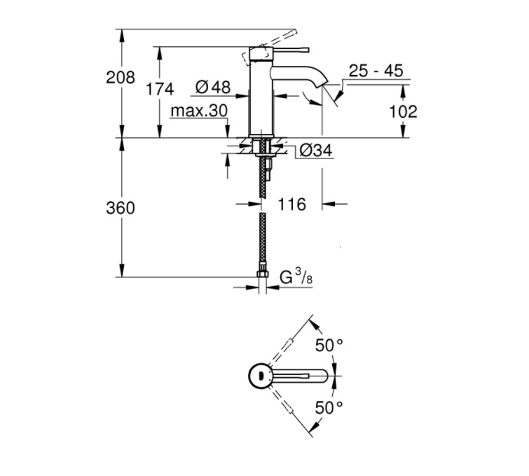 Grohe Essence Mitigeur monocommande taille S avec cartouche en céramique, Hard graphite brossé (24172AL1)