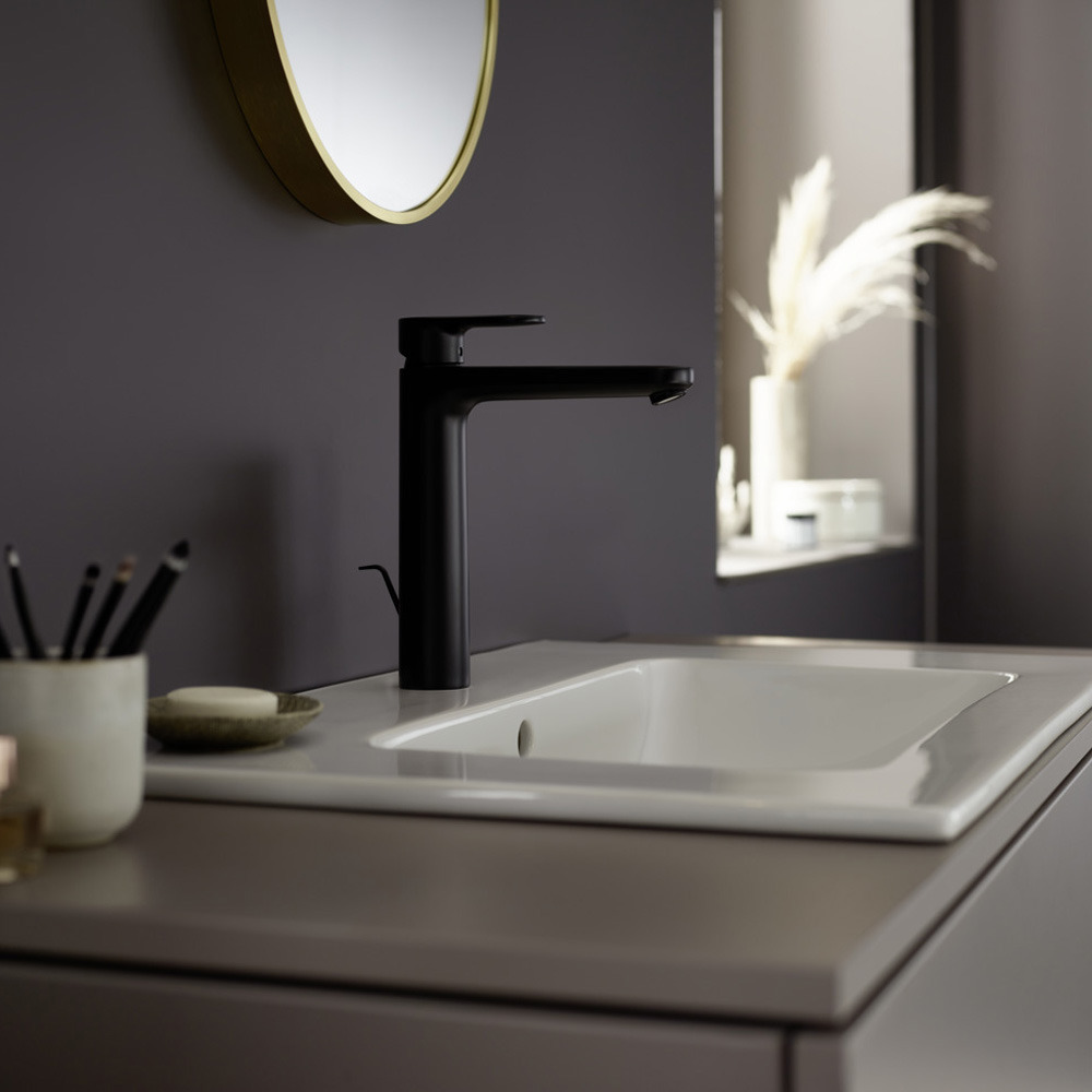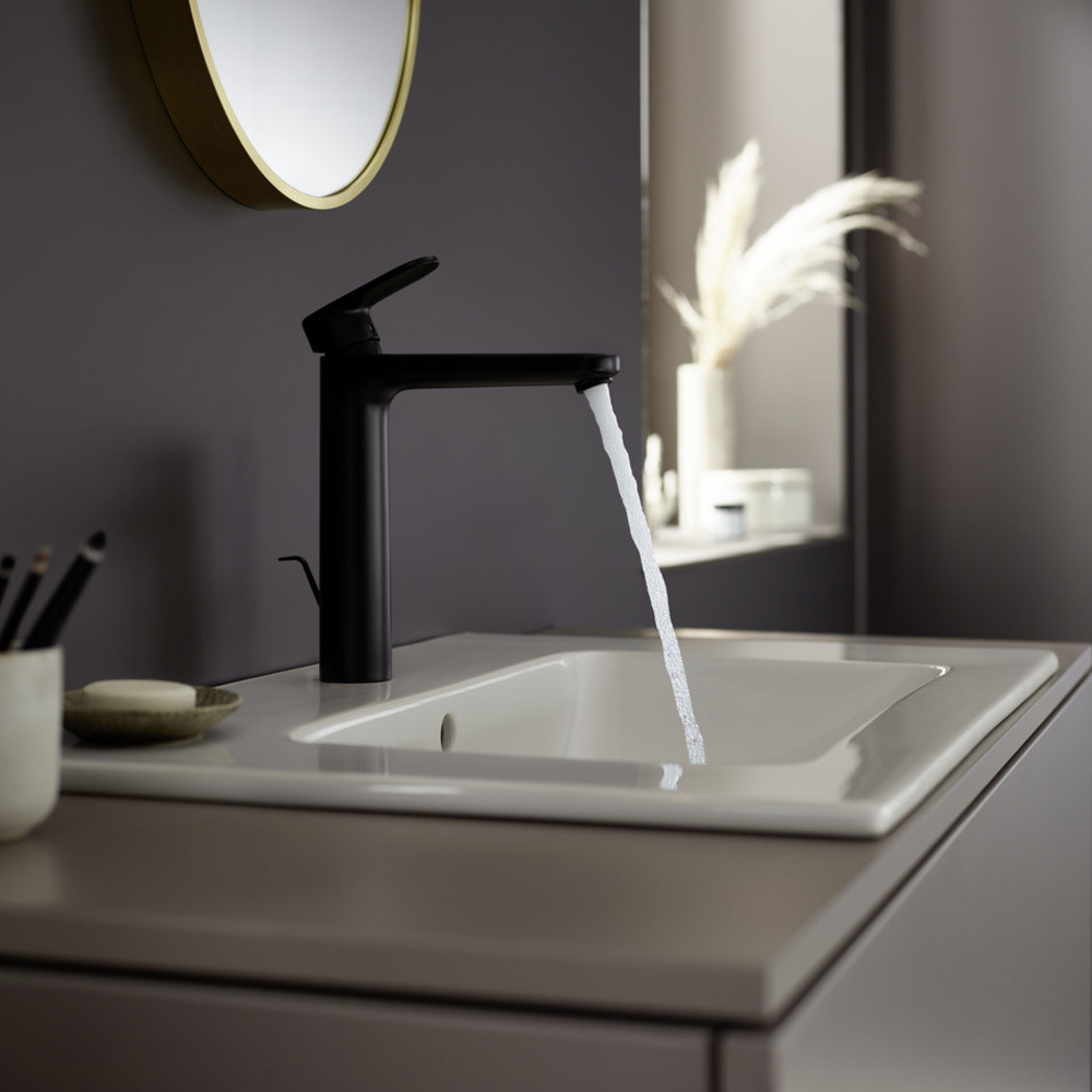 Caractéristiques du Mitigeur de lavabo 190 avec tirette et vidage synthétique, Noir mat, Vernis Blend Hansgrohe (71552670) :
