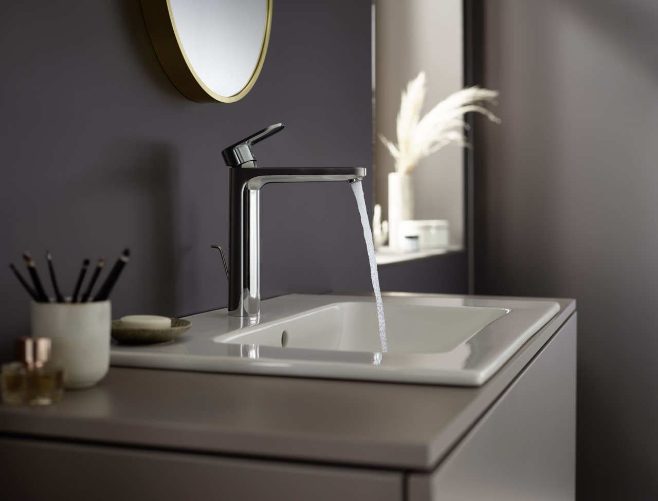 Caractéristiques du Mitigeur de lavabo 190 avec tirette et vidage synthétique, Chrome, Hansgrohe Vernis Blend (71552000) :