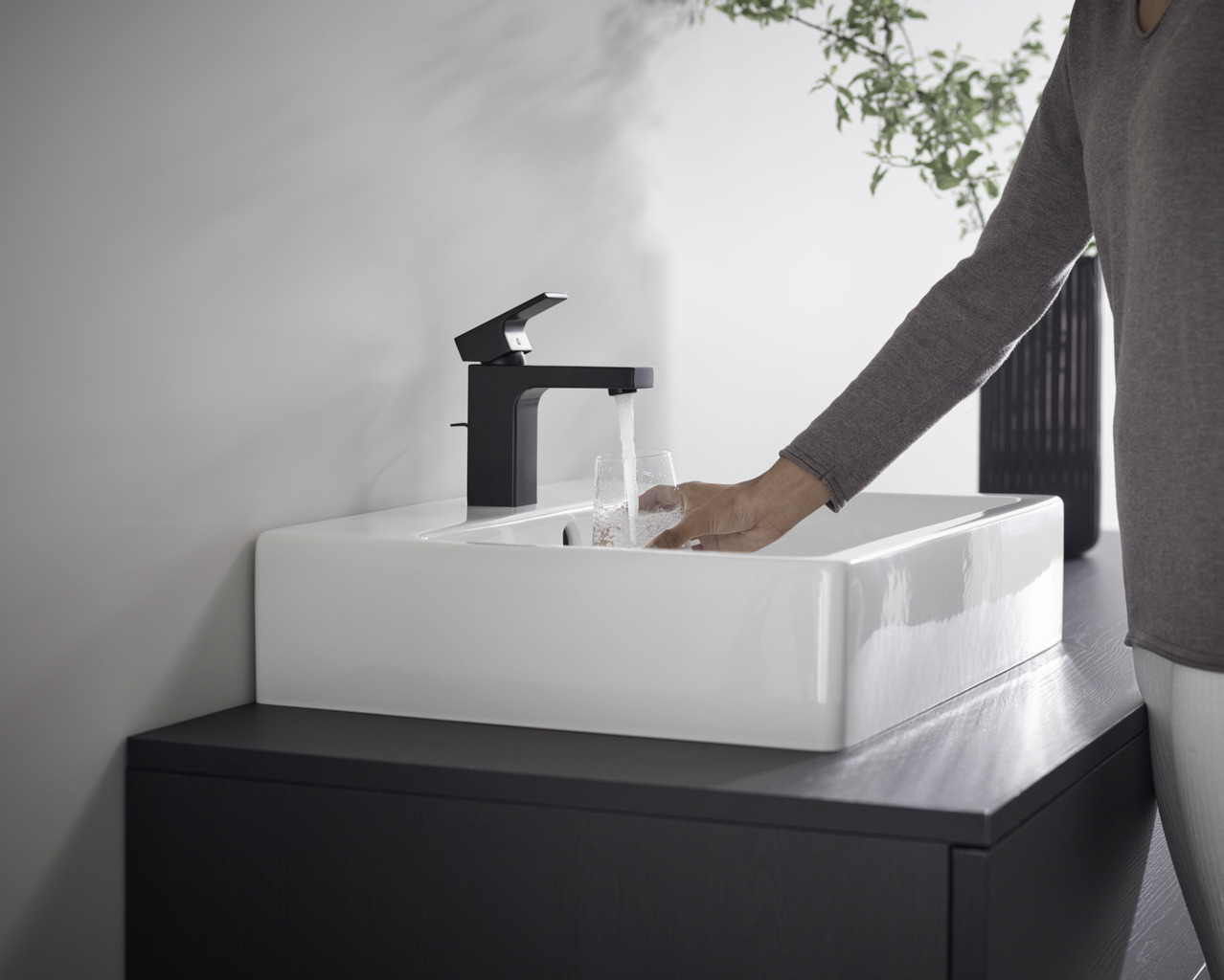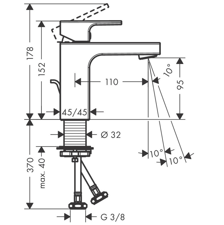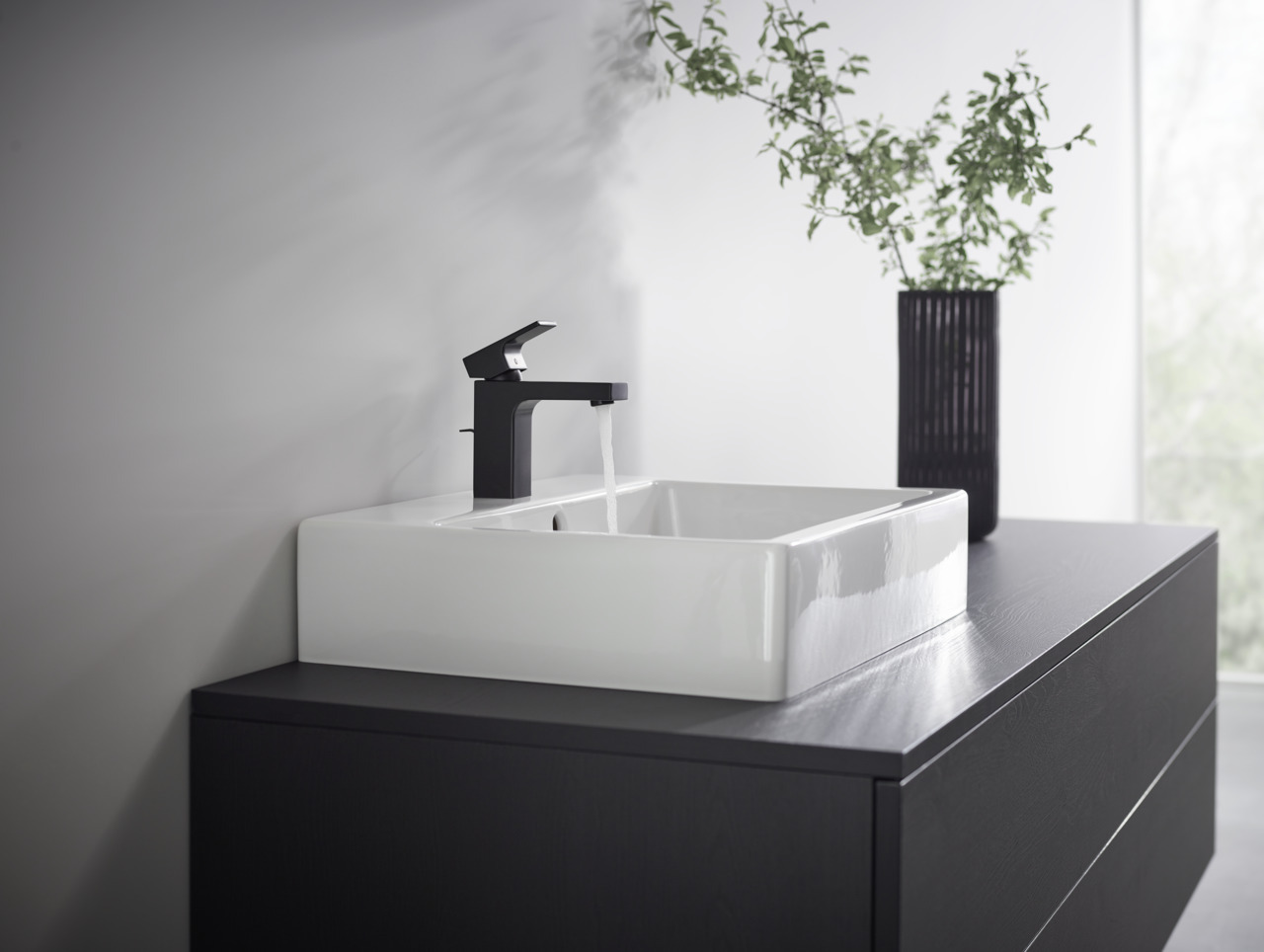 Caractéristiques du Mitigeur de lavabo C, avec cartouche en céramique, tirette et vidage synthétique, Noir mat, Hansgrohe Vernis Shape (71594670) :