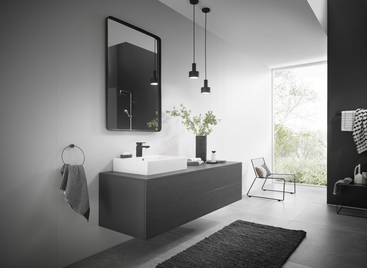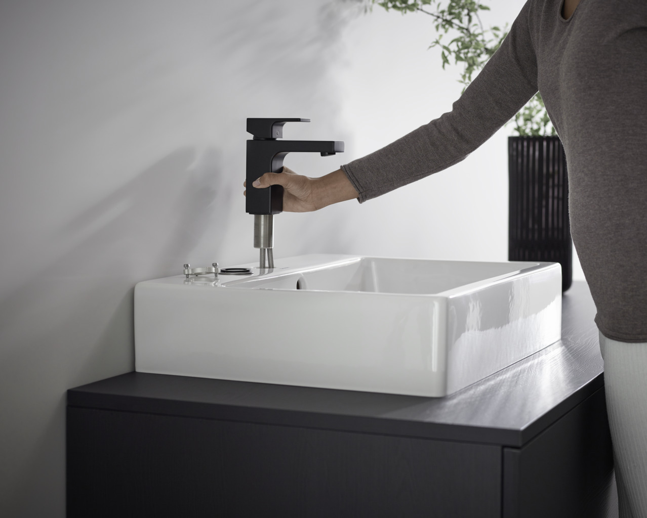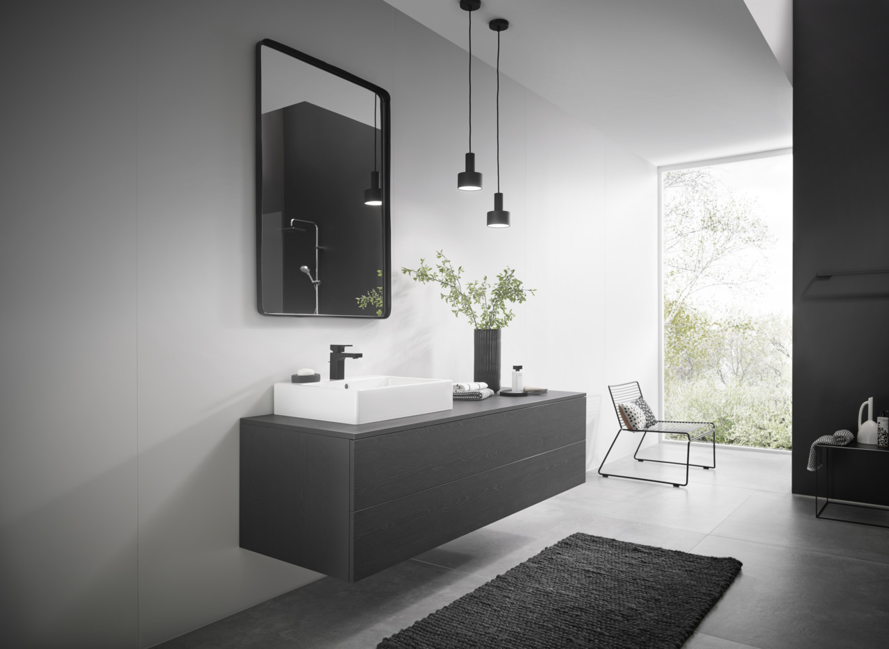 Caractéristiques du Mitigeur de lavabo C, avec cartouche en céramique, tirette et vidage synthétique, Noir mat, Hansgrohe Vernis Shape (71594670) :