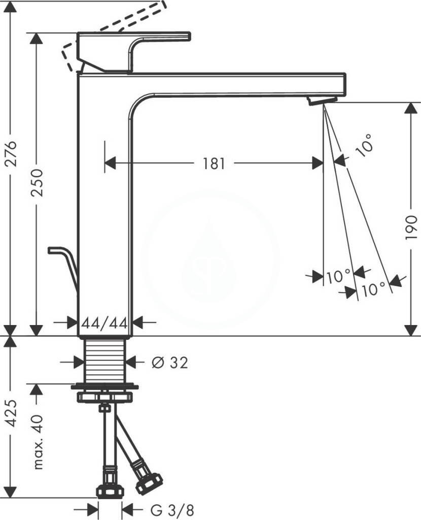 Caractéristiques du Mitigeur de lavabo 190 avec tirette et vidage métallique, Chrome, Hansgrohe Vernis Shape (71590000) :