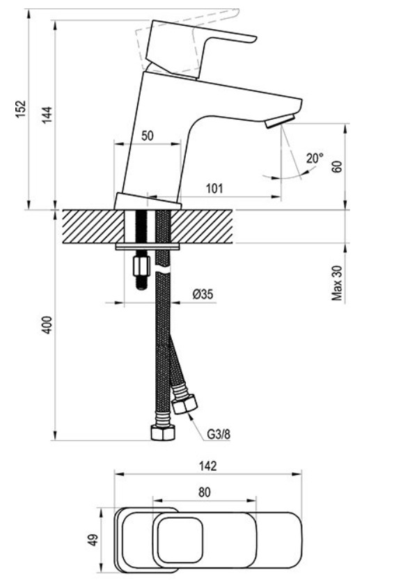 Ce mitigeur présente une inclinaison qui vous permettra un niveau de confort exceptionnel en vous facilitant le nettoyage de la zone entre le mur et le mitigeur, qui est généralement plus difficilement accessible.