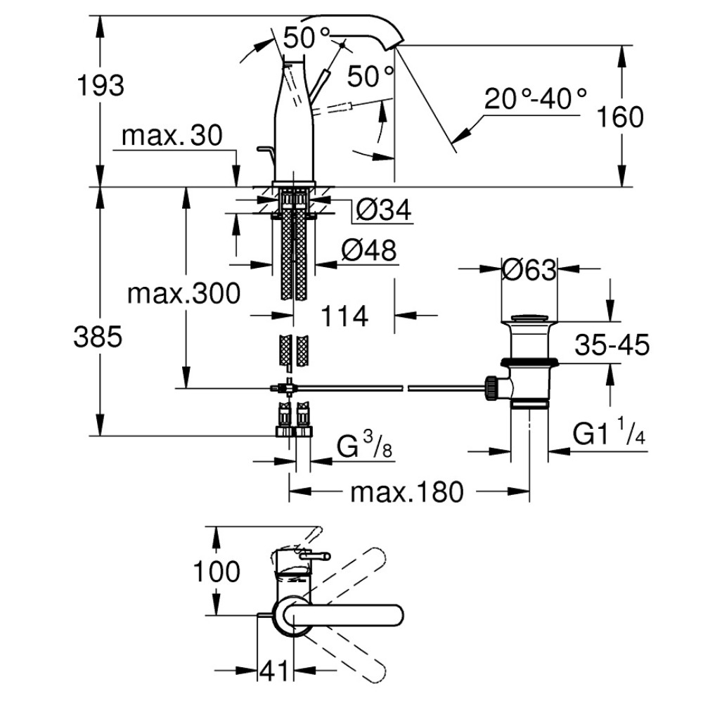 Caractéristiques du Mitigeur monocommande 1/2" Lavabo Taille M chrome, Grohe Essence (23462001) :