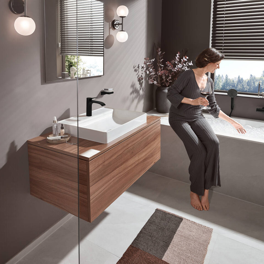 Hansgrohe Vivenis Mitigeur de lavabo 110 sans tirette ni vidage, bec cascade, noir mat (75022670)