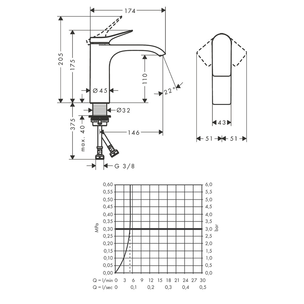 Caractéristiques  du Vivenis Mitigeur de lavabo 110 sans tirette ni vidage, bec cascade, noir mat.