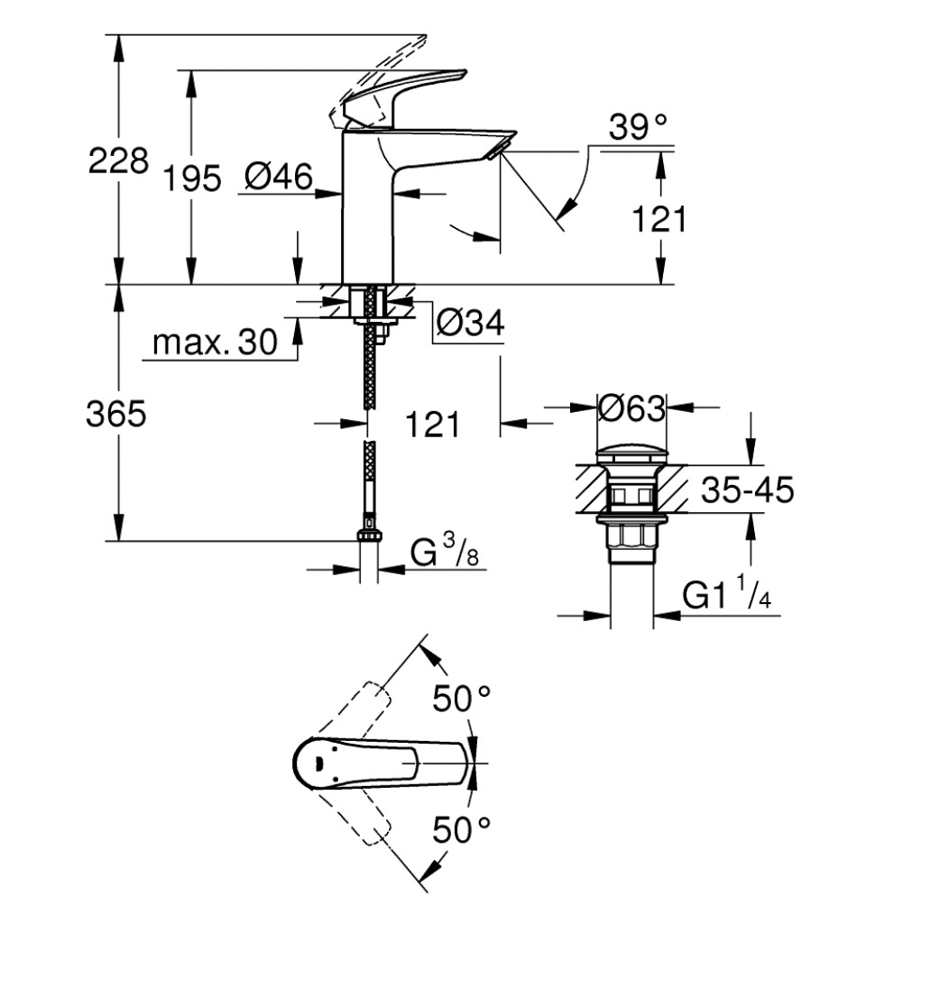 Caractéristiques du Mitigeur 1/2" Lavabo Taille M: