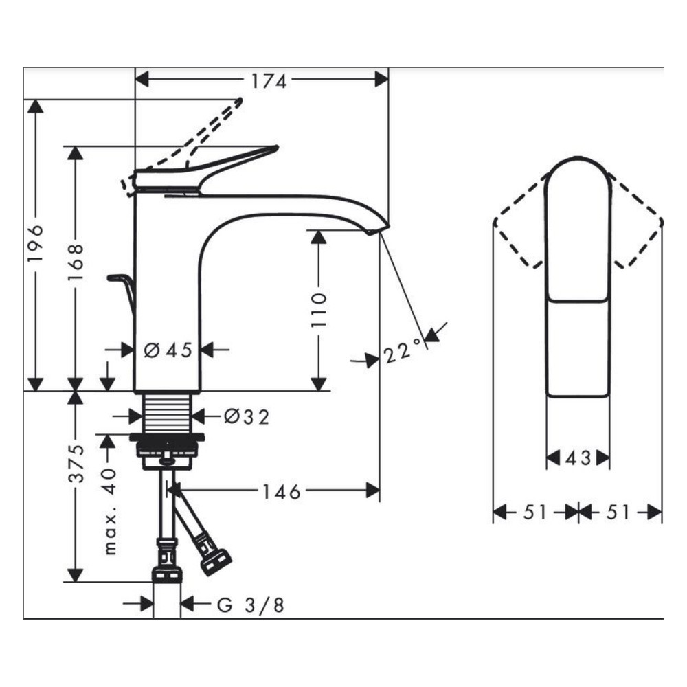 Caractéristiques du Vivenis Mitigeur de lavabo 110 avec tirette et vidage, bec cascade, chrome (75020000)