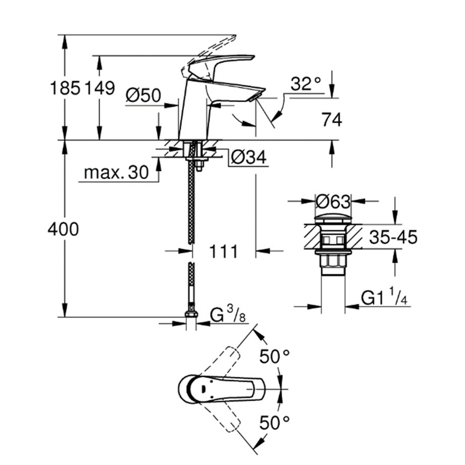 Caractéristiques du EUROSMART Mitigeur monocommande de lavabo Taille S , Chrome (23968003):
