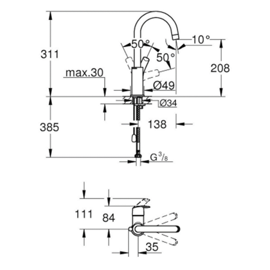 - Hauteur du bec:208mm