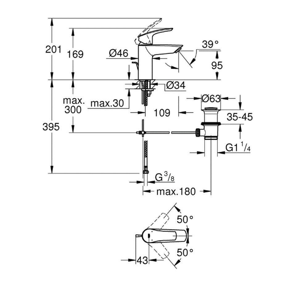 Caractéristiques du EUROSMART Mitigeur monocommande de lavabo Taille S , Chrome (33265003) :