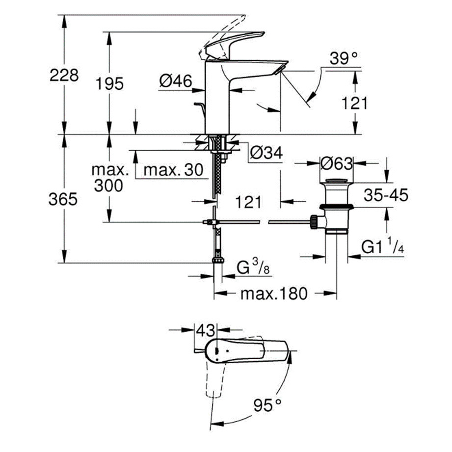 - Hauteur du bec:121mm