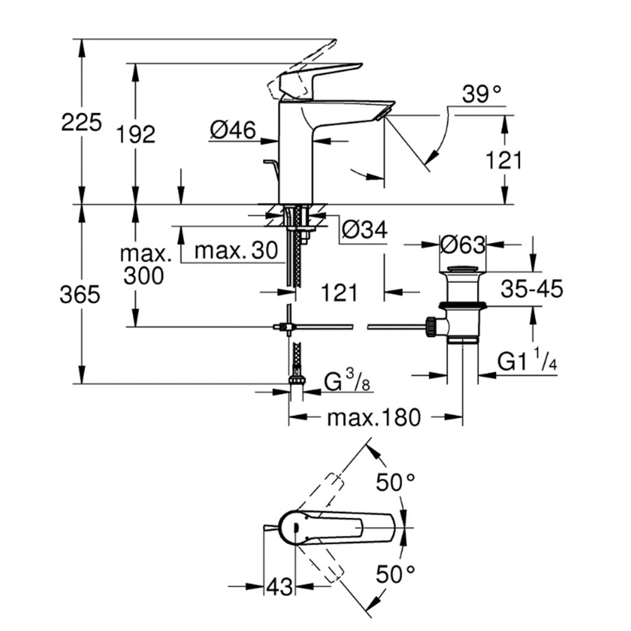 Caractéristiques du START Mitigeur Monocommande de lavabo, Taille M, avec vidage, Chrome (23455002):