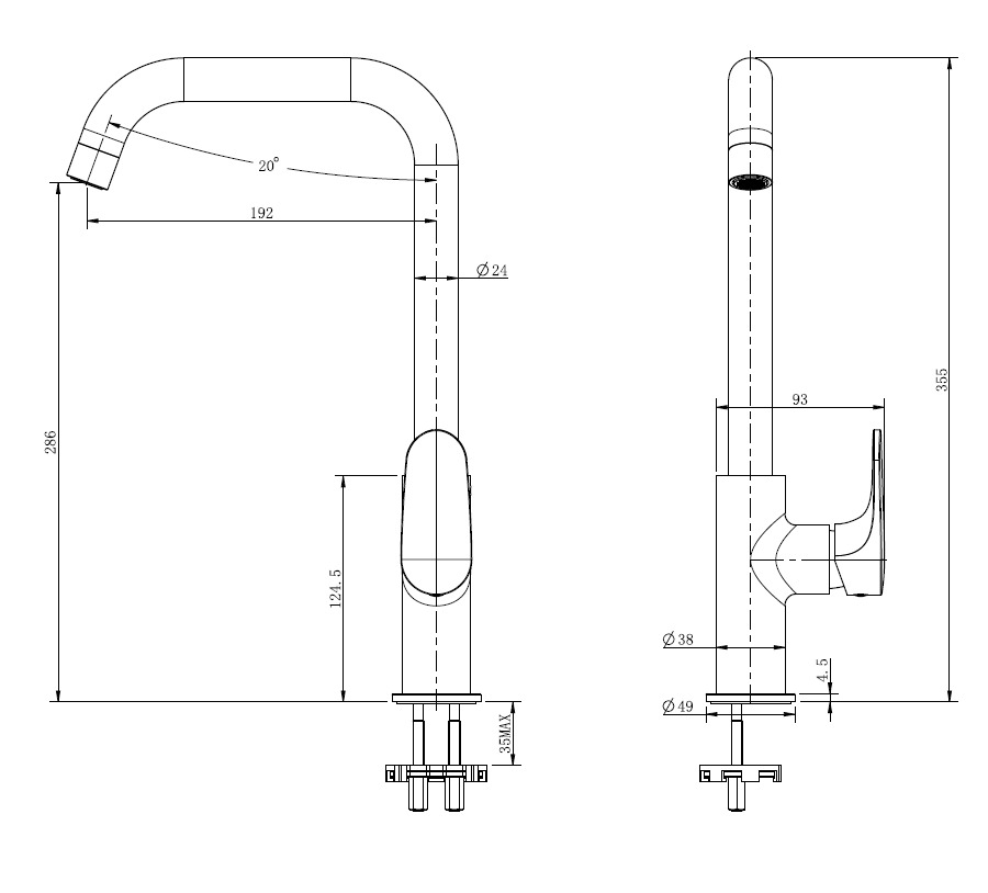 Dark mitigeur de lavabo avec bec pivotant, chrome (SATBSDA280LCR)