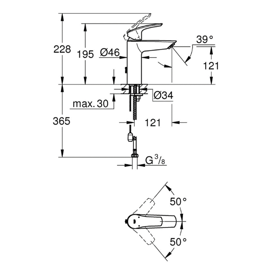 Caractéristiques de l'EUROSMART Mitigeur monocommande de lavabo Taille M, avec vidage, Chrome (23323003):
