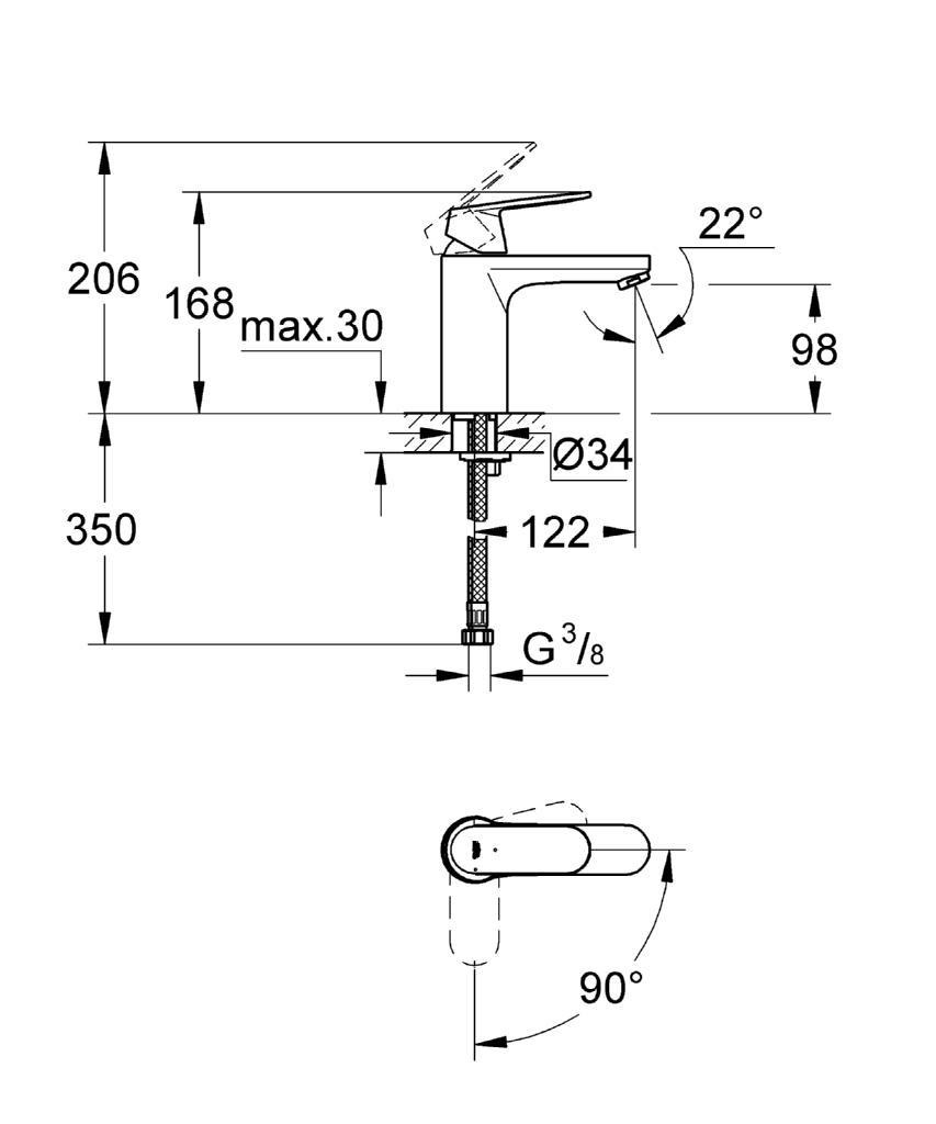 Grohe Eurosmart Cosmopolitan - Mitigeur de lavabo CE, chrome (2339800E)