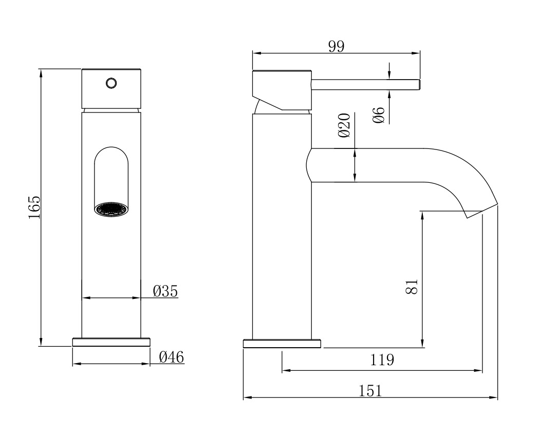 - Hauteur du robinet : 16,5 cm