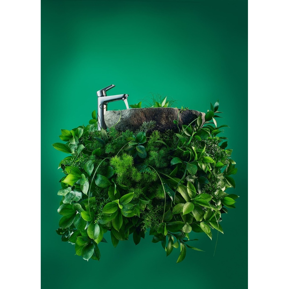 Robinet de lavabo à levier sans Déchets. En VOVO. Le débit est de 9 litres/minute. La hauteur du mitigeur est de 15,2 cm.