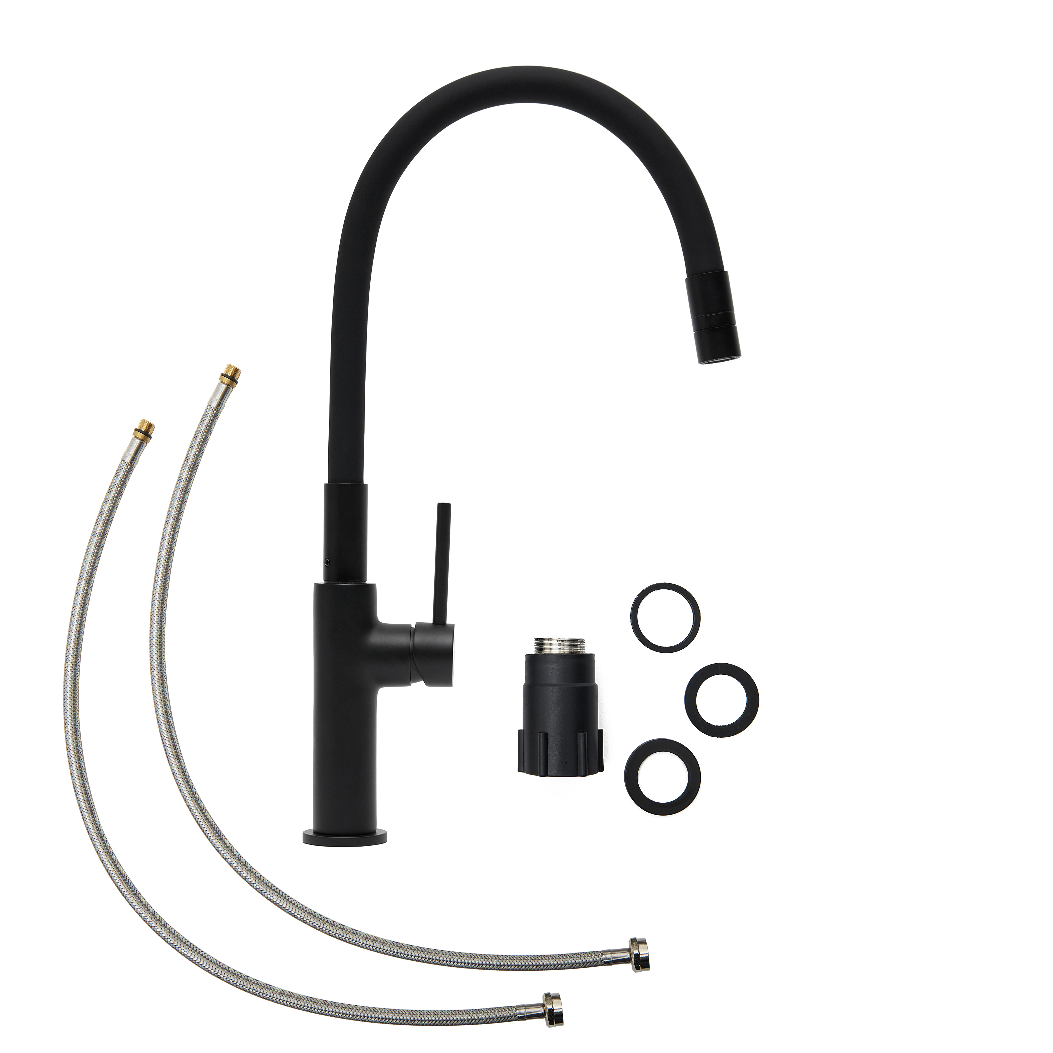 Mitigeur pour évier de cuisine, bec flexible en silicone, aérateur Neoperl®, cartouche en céramique, noir mat (SATBSD290CM) :