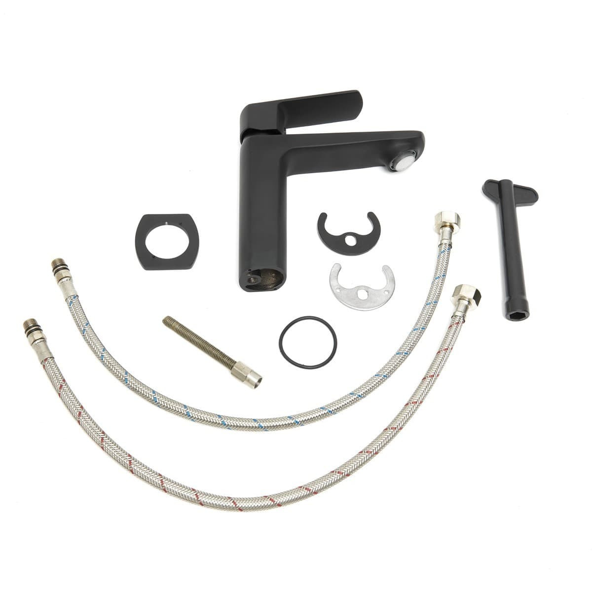 set mitigeur lavabo sans tirette + mitigeur de cuisine avec aérateur Neoperl®, noir mat (SATBS271C)