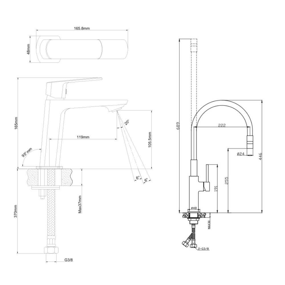 - Hauteur du mitigeur:16,5 cm