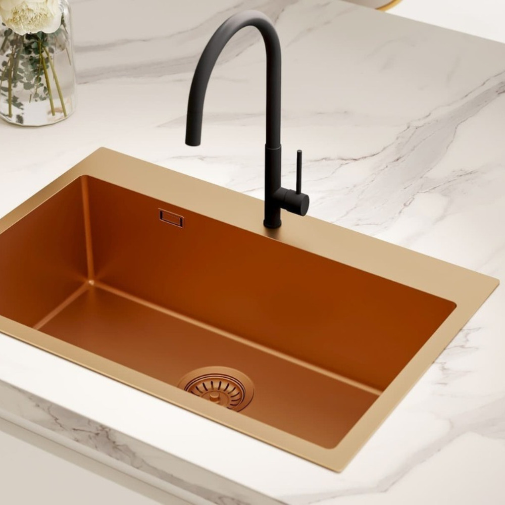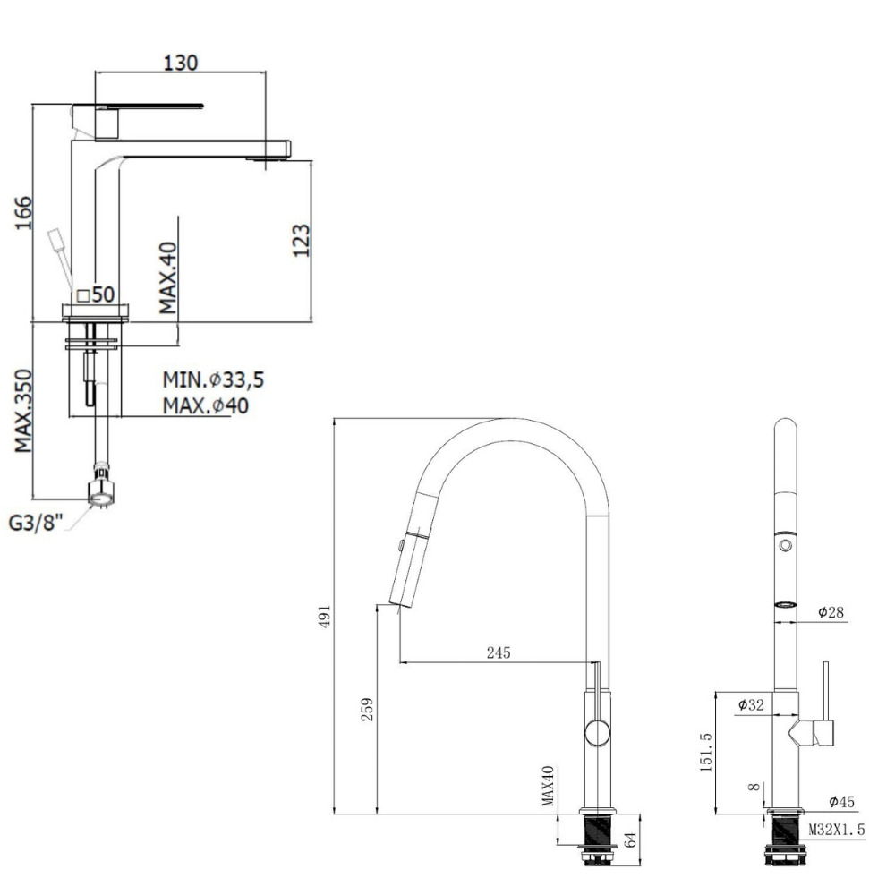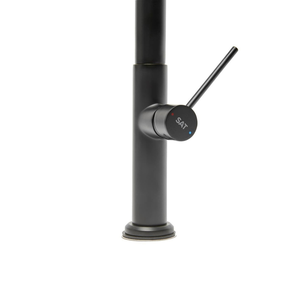 Set mitigeur lavabo + mitigeur monocommande cuisine avec douchette extractible 2 jets, noir mat (SATBSBW288C)