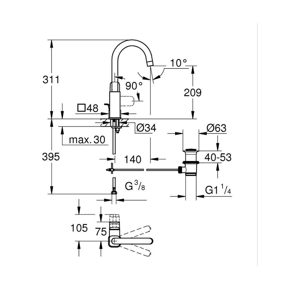 - GROHE QuickFix : installation ultra rapide avec outil QuickTool fourni