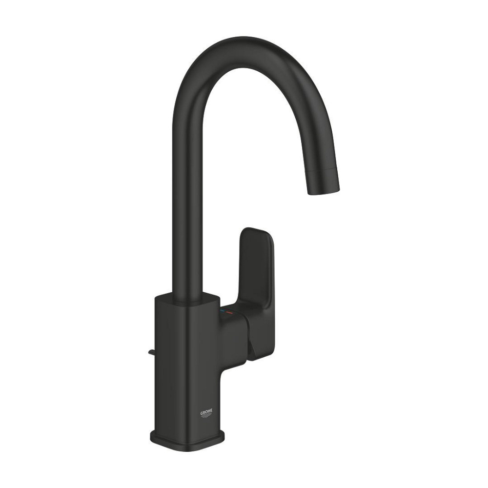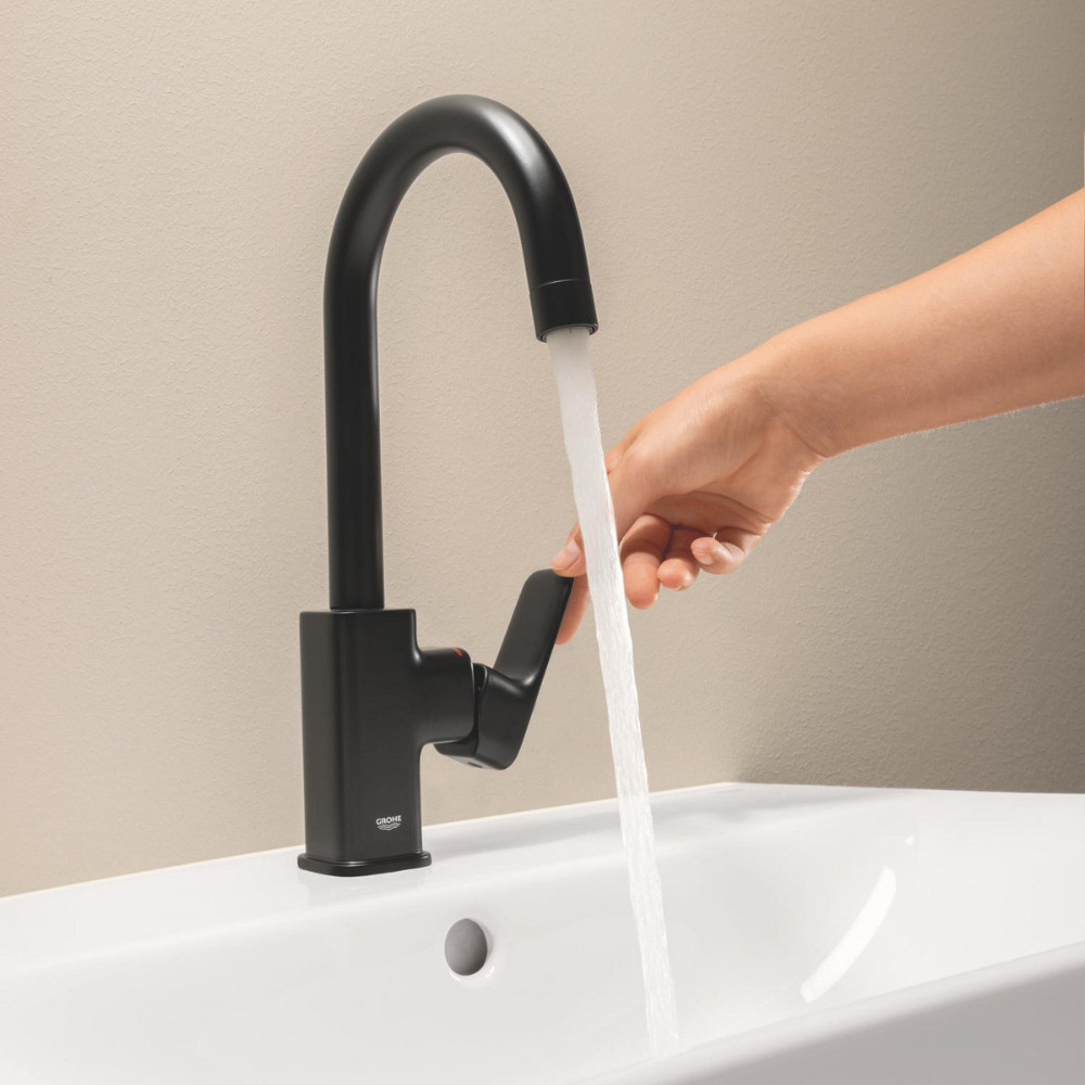 Caractéristiques du mitigeur monocommande de lavabo 1/2" à levier tactile, taille L, Grohe Dice, noir mat (1018712430) :