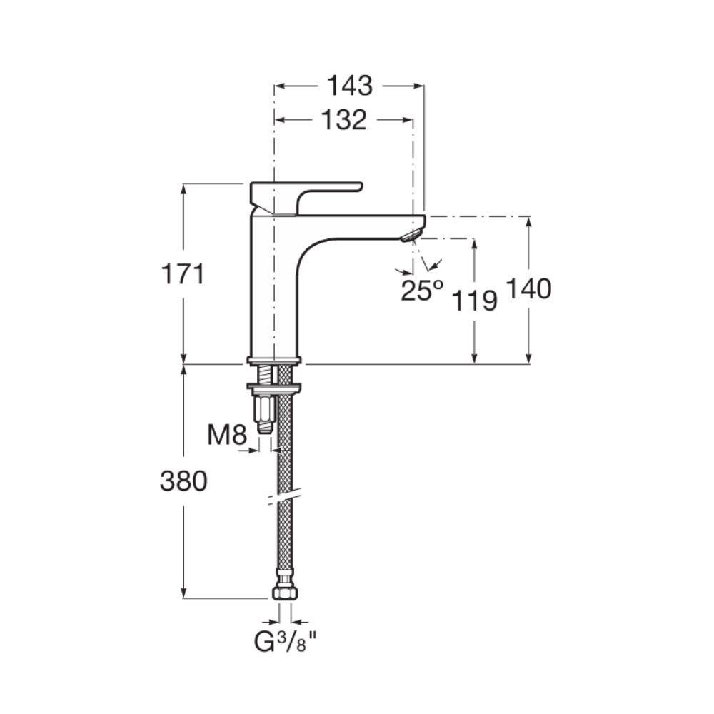 Caractéristiques du mitigeur de lavabo à levier, sans vidage, Roca L20, chrome (7.5A3B.0.9C0.0) :
