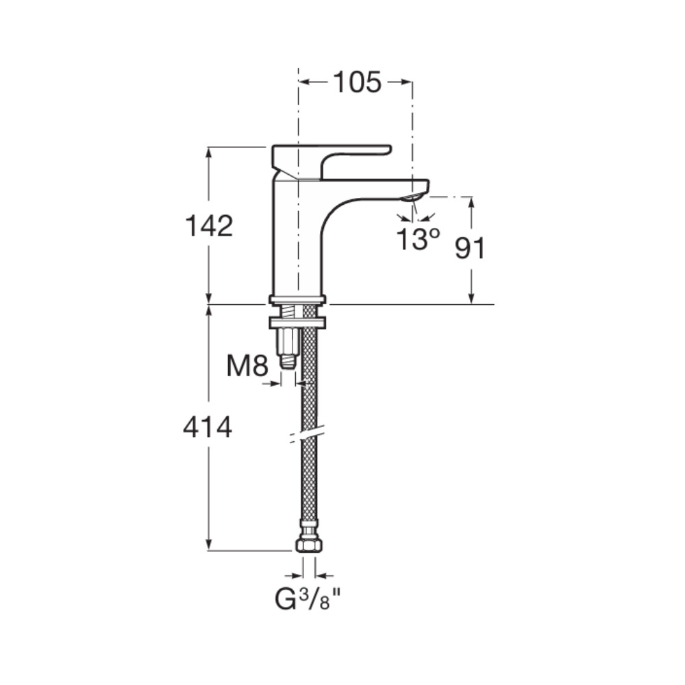 Caractéristiques du mitigeur de lavabo à levier, sans vidage, Roca L20, chrome (A5A3K09C00) :