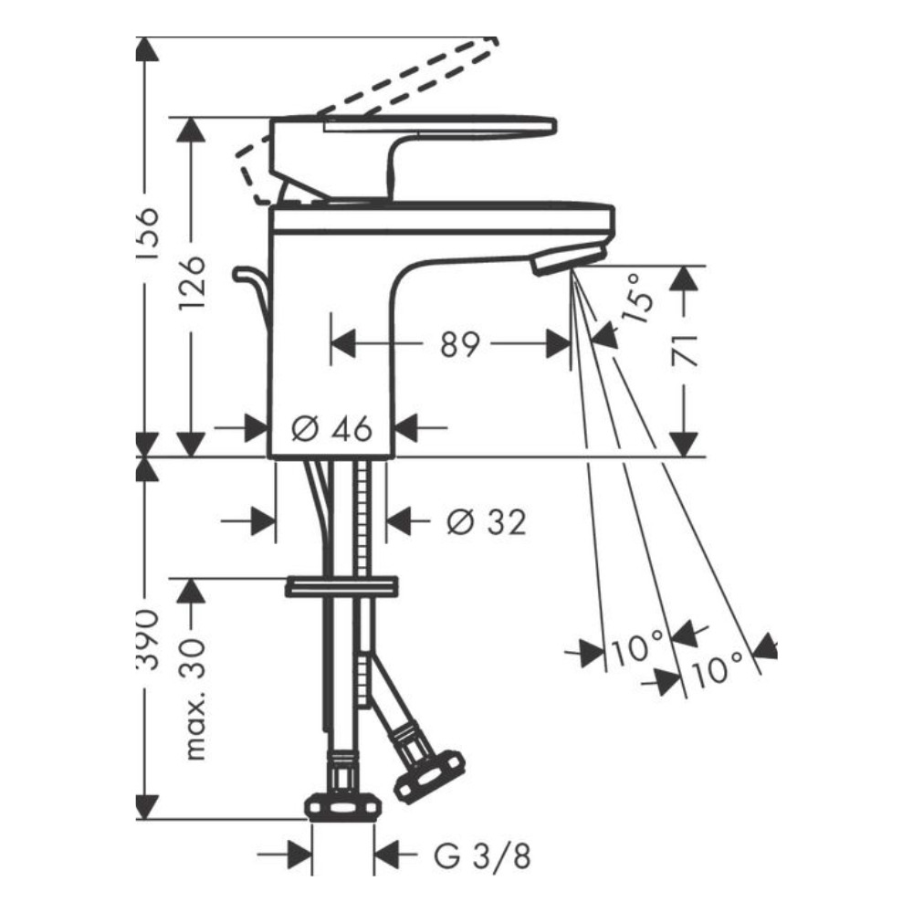Caractéristiques du mitigeur de lavabo à levier, taille S, sans vidage, Hansgrohe Vernis Blend, chrome (71570000) :