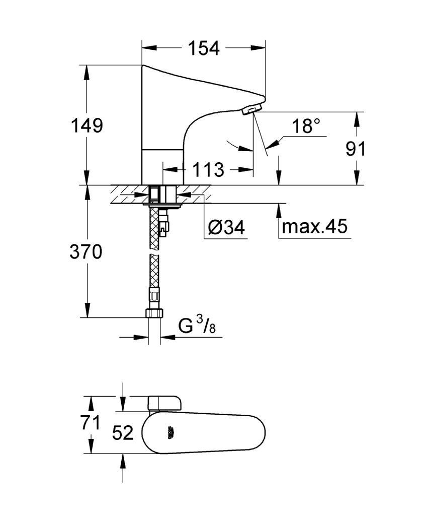 Grohe Europlus E Mitigeur lavabo infrarouge 1/2" avec limiteur de température ajustable, Chromé (36207001)