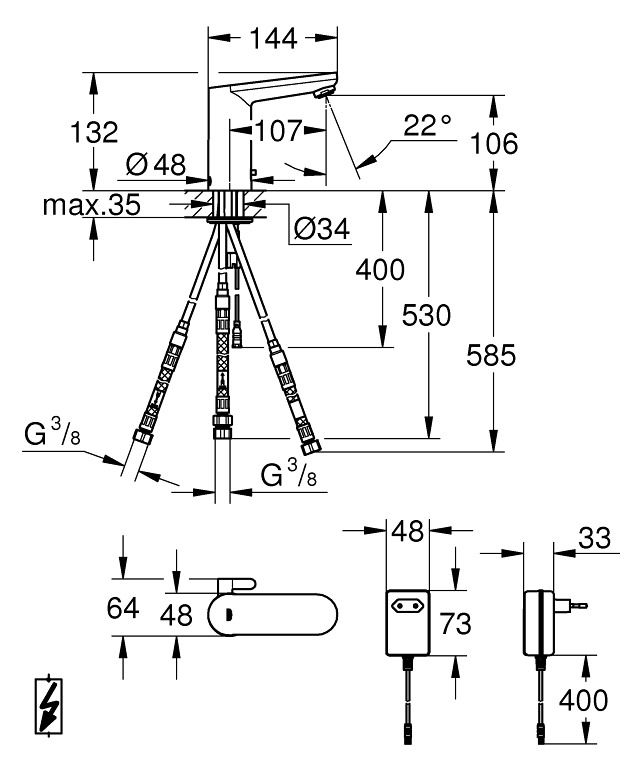 Grohe Eurosmart Cosmopolitan E Mitigeur lavabo infrarouge avec mitigeur et limiteur de température ajustable, chromé (36324001)