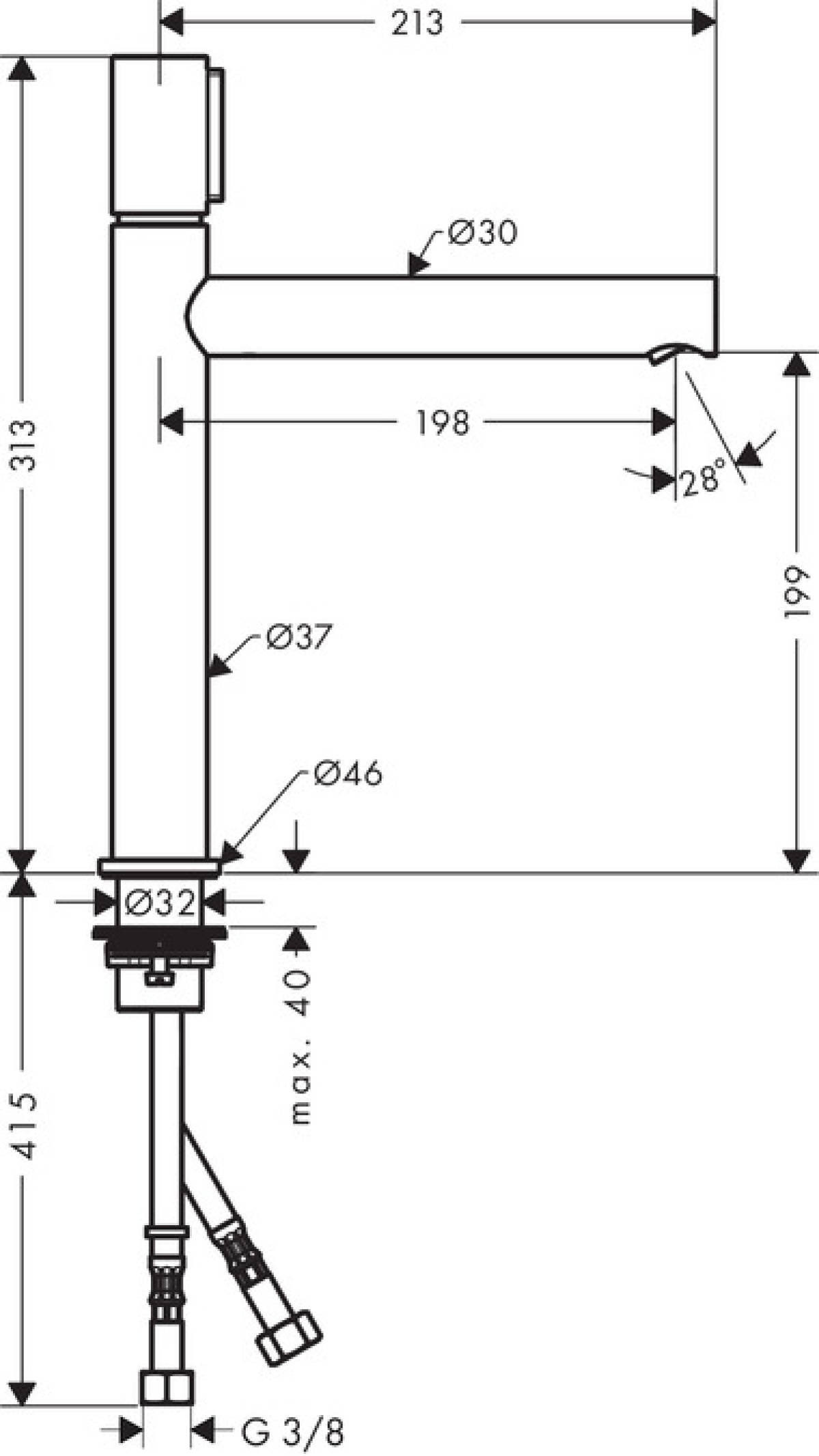 Axor Mitigeur lavabo Select 200, bonde à écoulement libre (45013000)