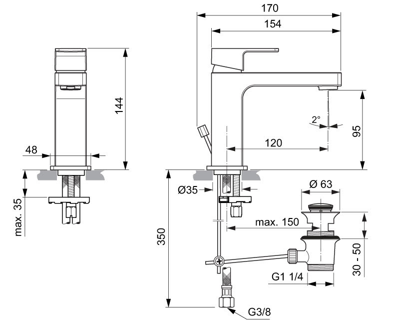 - Diamètre du trou de robinetterie: 35 mm