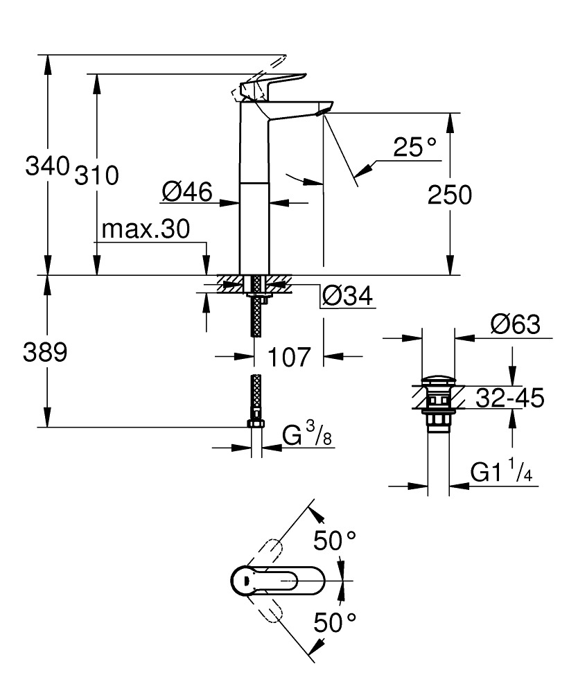 Grohe StartEdge set mitigeur monocommande pour lavabo Taille XL + bonde clic-clac Grohe (23777000)