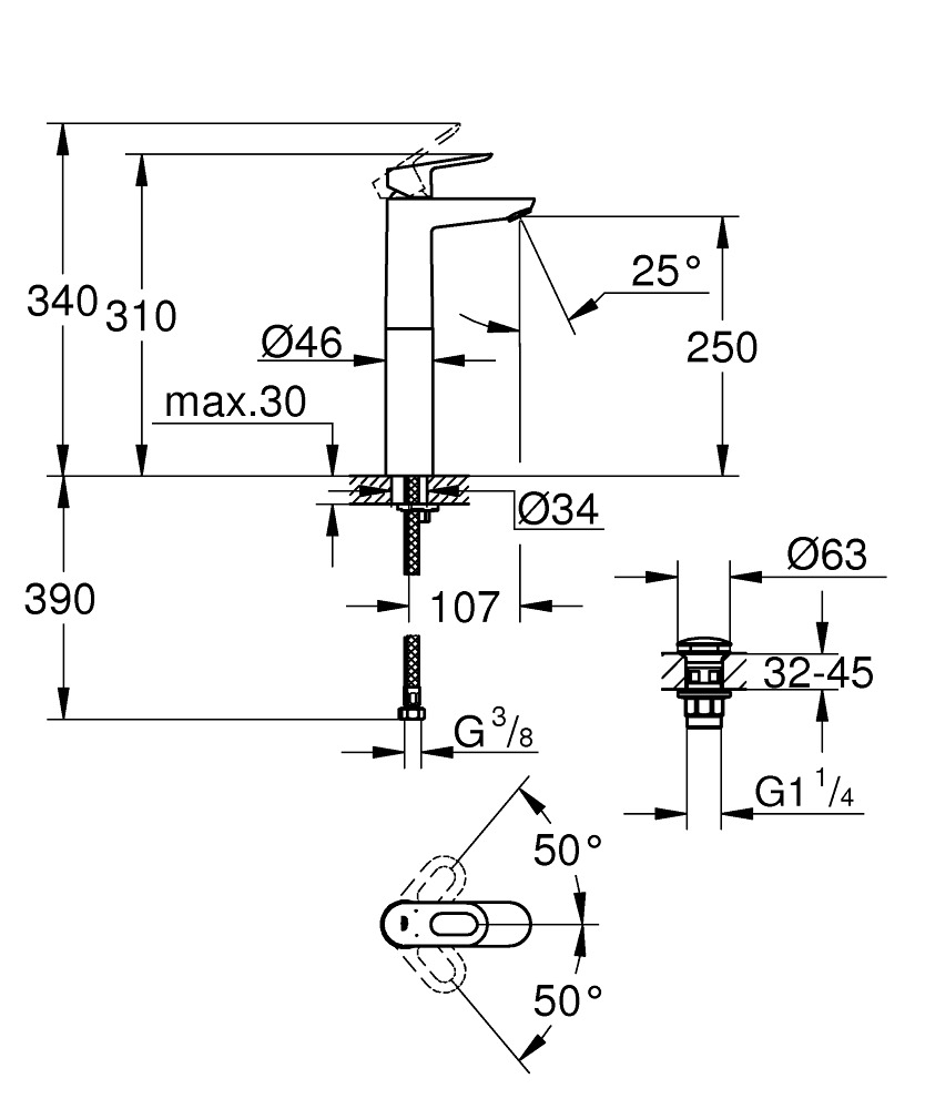 Grohe Start Loop Mitigeur monocommande lavabo taille XL, Chrome (23781000)
