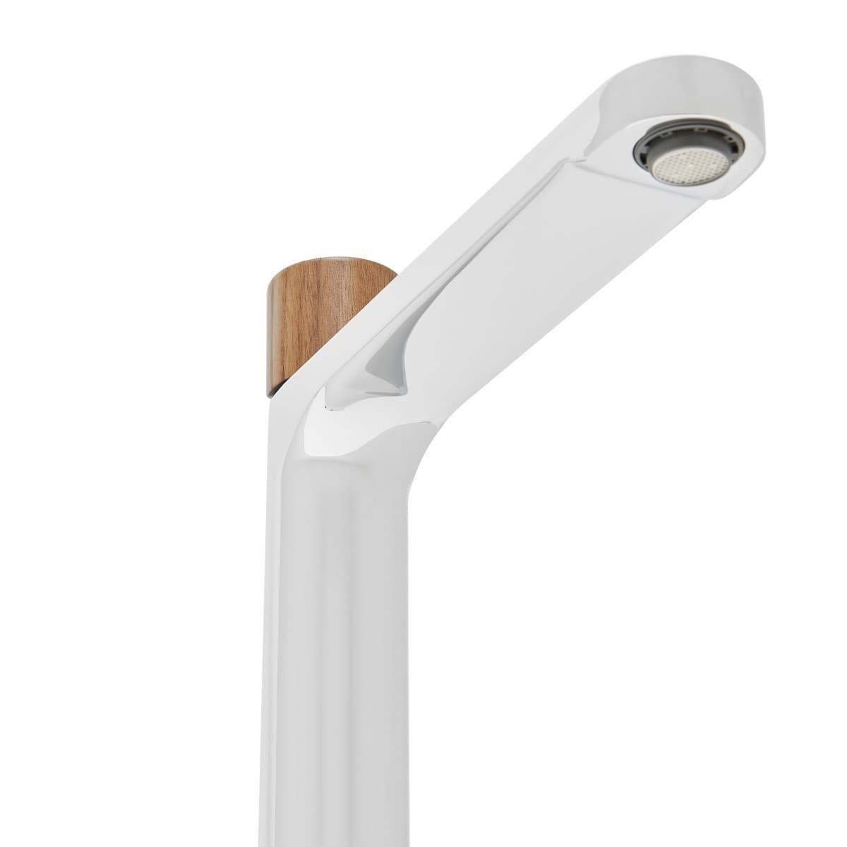 Ce mitigeur de lavabo haut sans tirette ni vidage convient particulièrement aux salles de bains conçues dans un design simple et minimaliste.