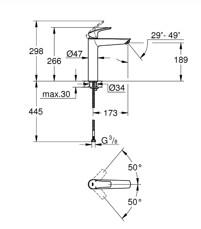Caractéristiques du EUROSMART Mitigeur monocommande de lavabo XL , Chrome (23971003)