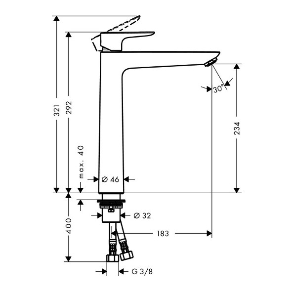 Hansgrohe Talis E 240 Mitigeur de lavabo sans tirette ni vidage (TALISE240-BP)