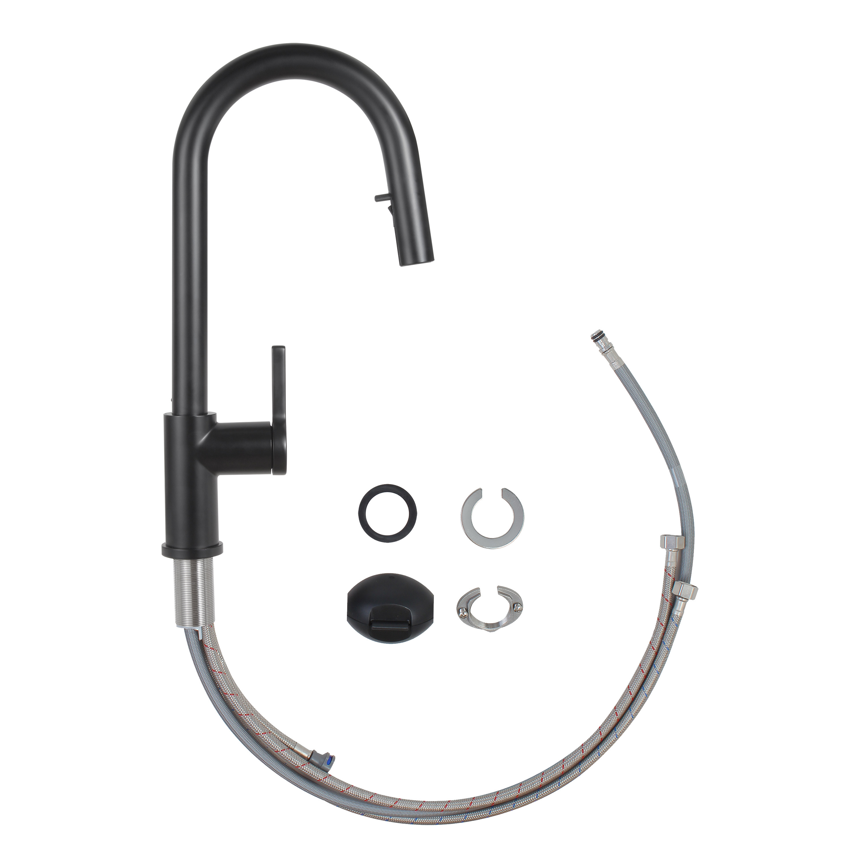 Timeless mitigeur d'évier à levier en acier inoxydable avec douchette extractible, monotrou, noir mat (TMLKF285BM) :