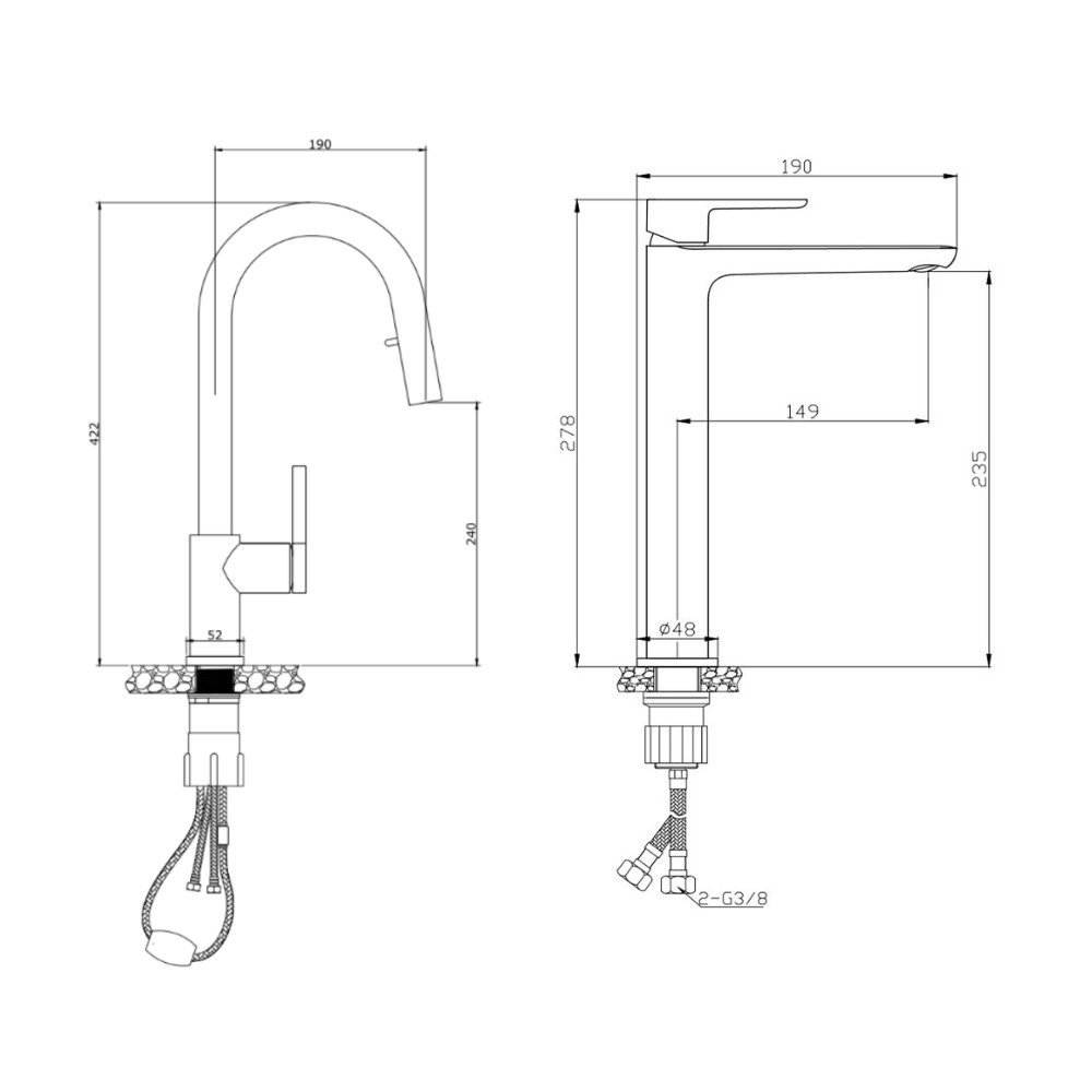- Longueur du tuyau : 40 cm (raccord G3/8)