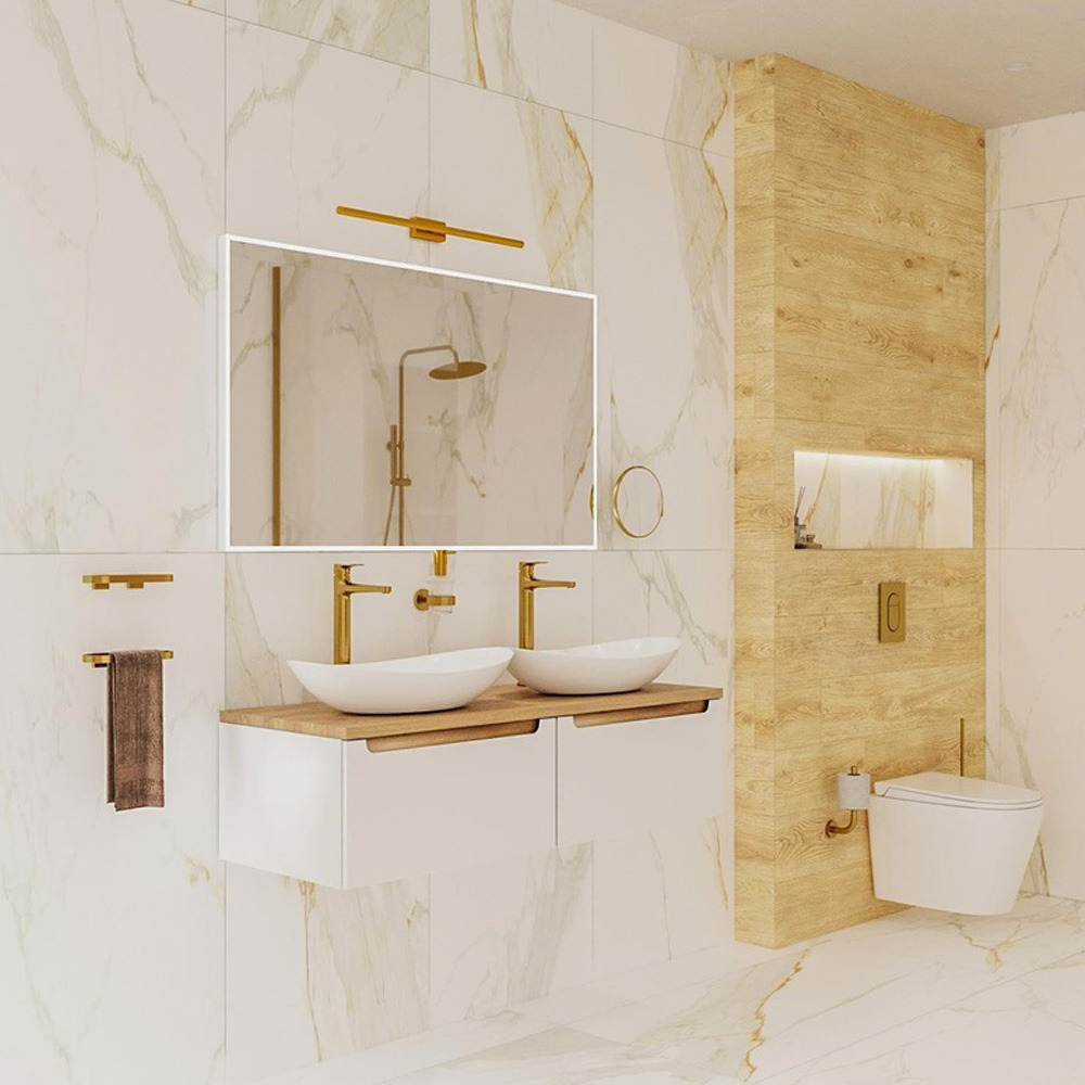 Dark set mitigeur lavabo XL + mitigeur cuisine avec bras pivotant, or brossé (SATBSDA285BZ)