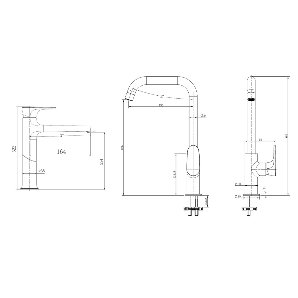 - Hauteur de robinet: 32,2 cm