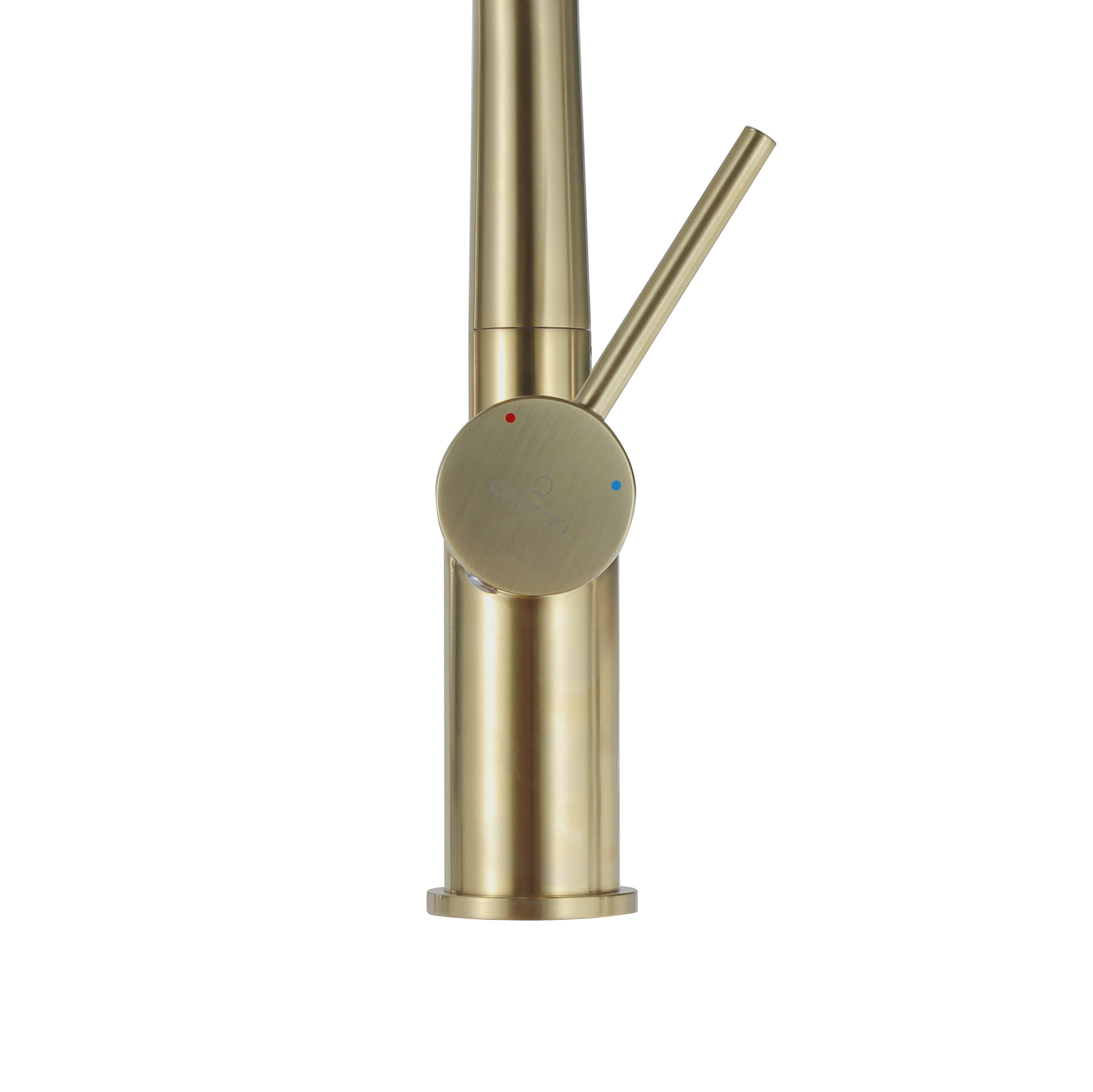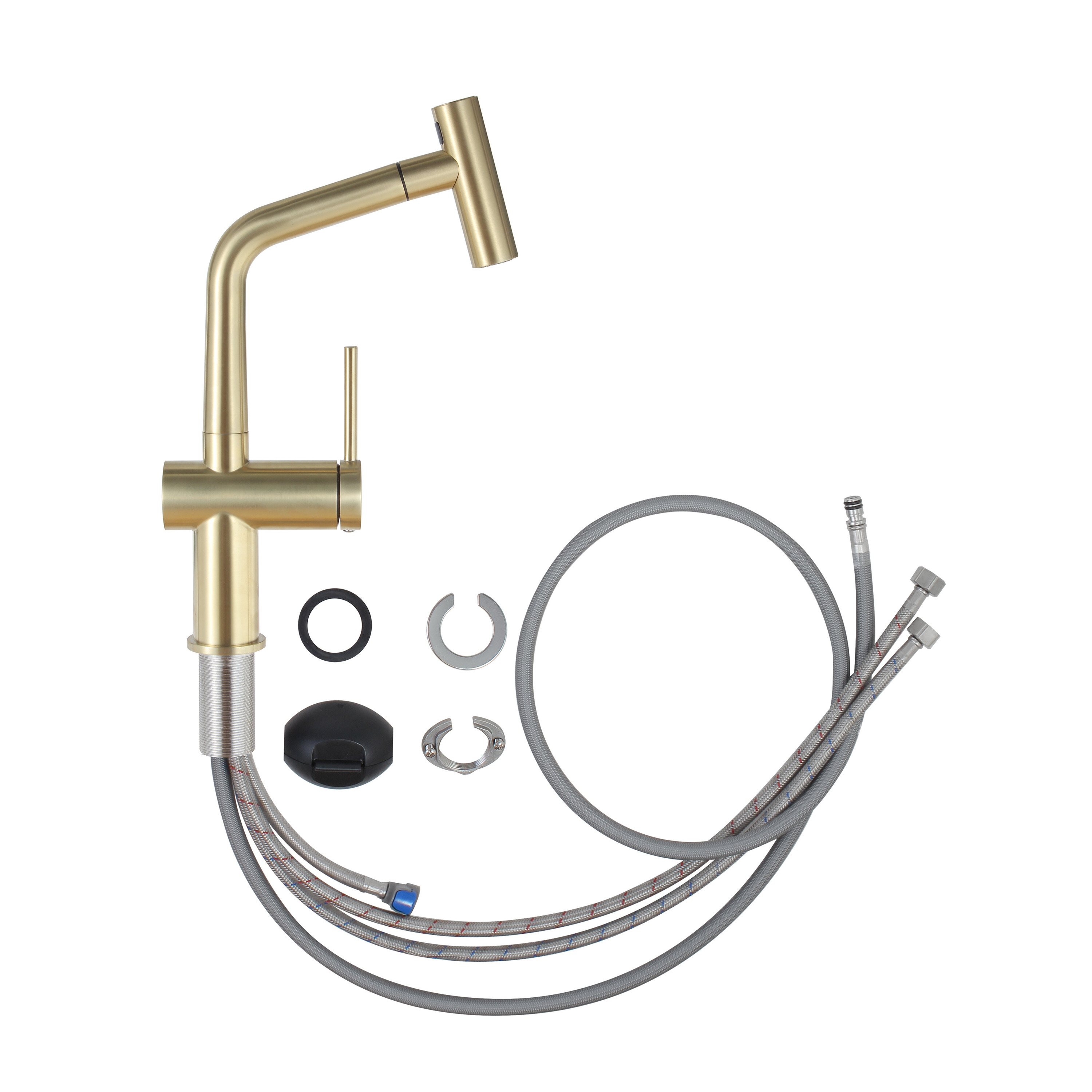 - Ceramia Timeless mitigeur d'évier à levier en acier inoxydable avec douchette extractible, monotrou, or brossé (TMLKF185BG)