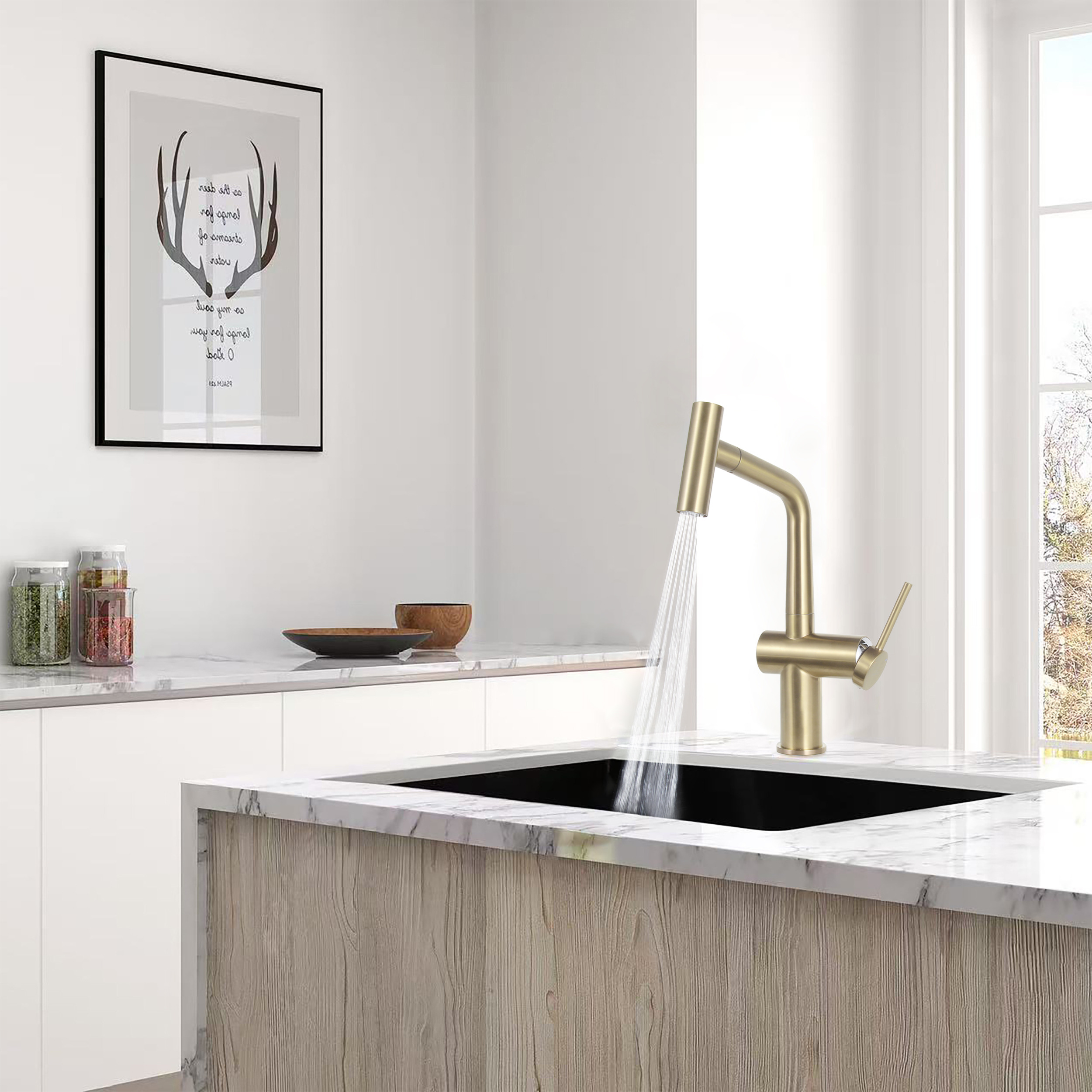 Timeless mitigeur d'évier à levier en acier inoxydable avec douchette extractible, monotrou, or brossé (TMLKF185BG) :