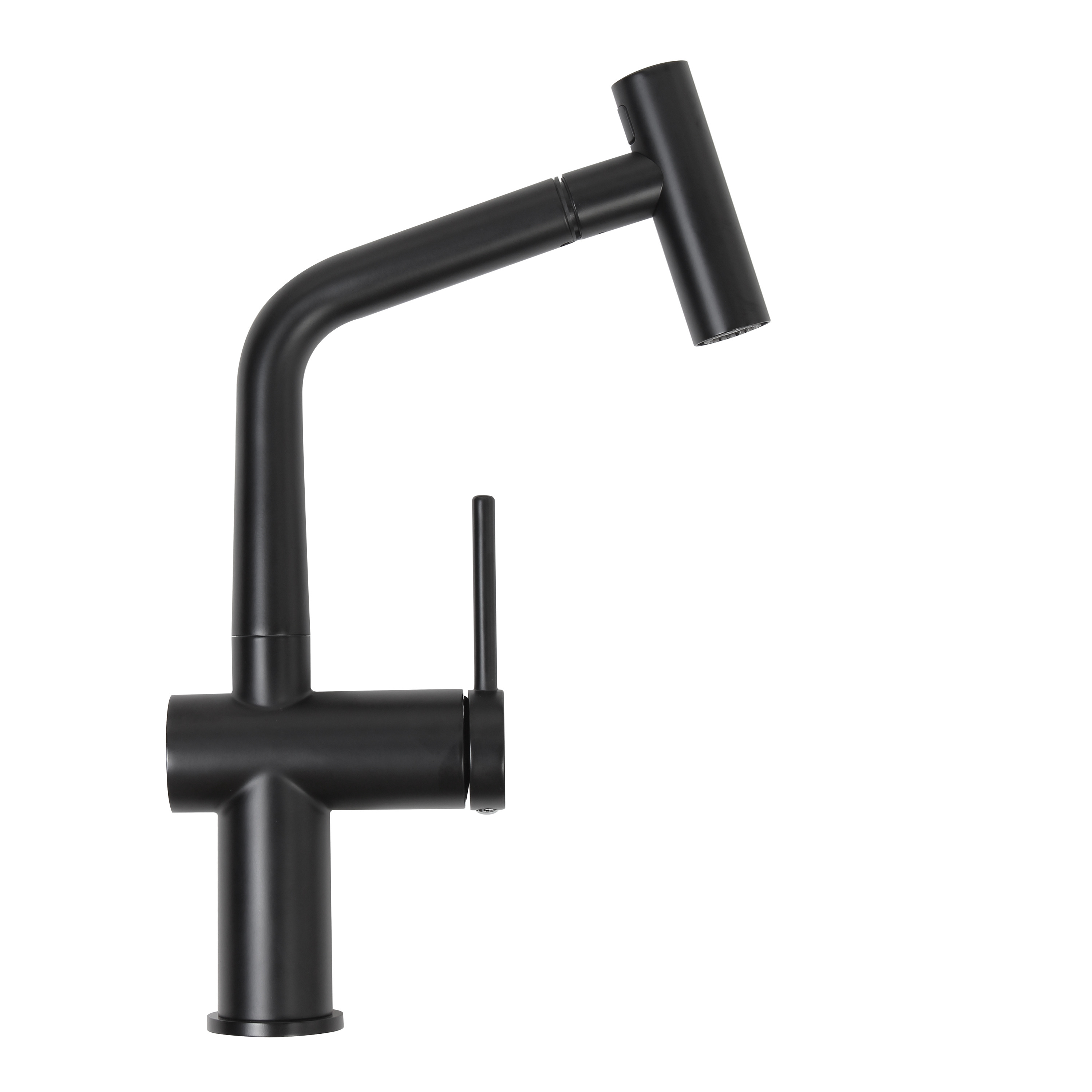 Timeless mitigeur d'évier à levier en acier inoxydable avec douchette extractible, monotrou, noir mat (TMLKF185BM) :