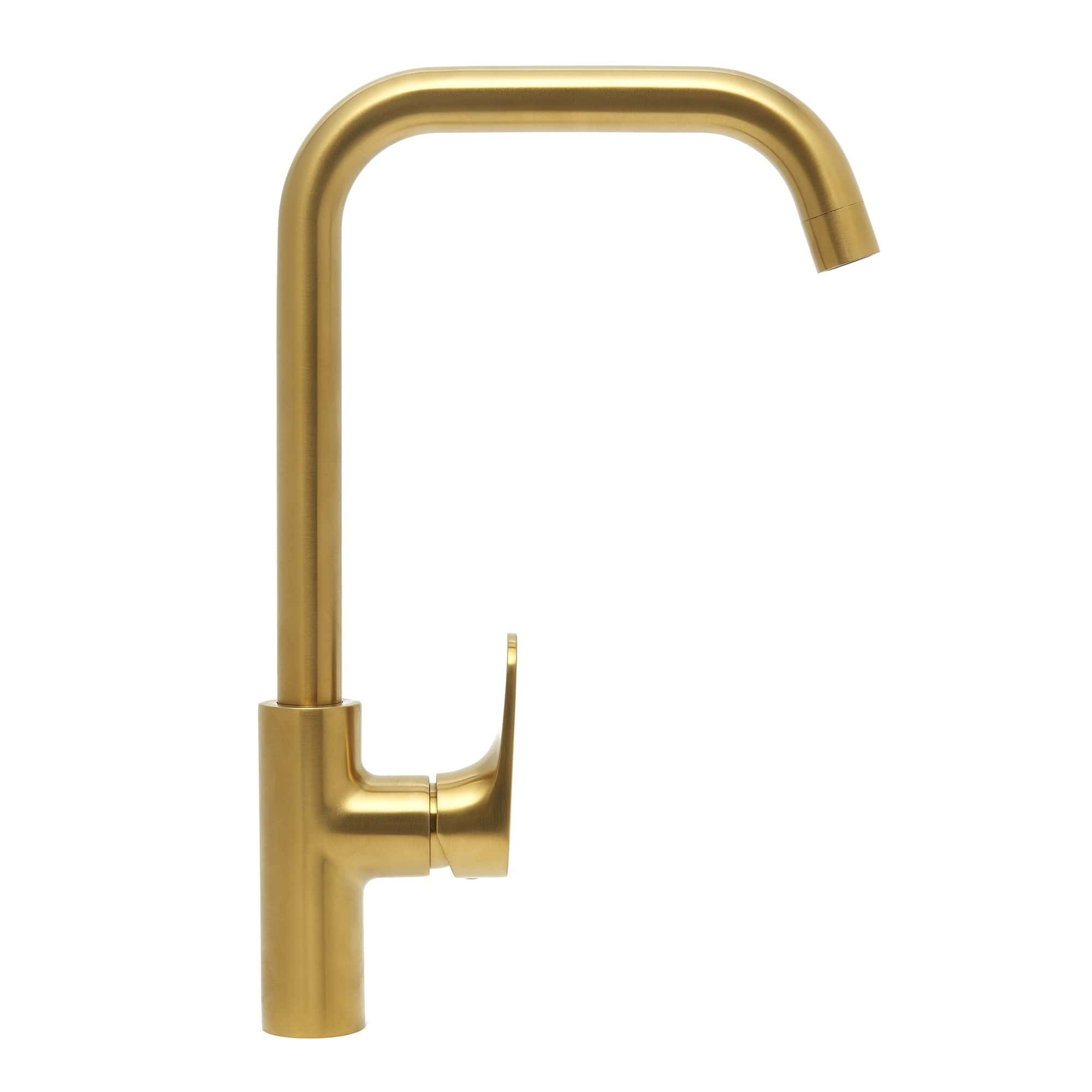 set mitigeur lavabo haut acier inoxydable + mitigeur cuisine avec bras pivotant, or brossé (SATBA280BG)