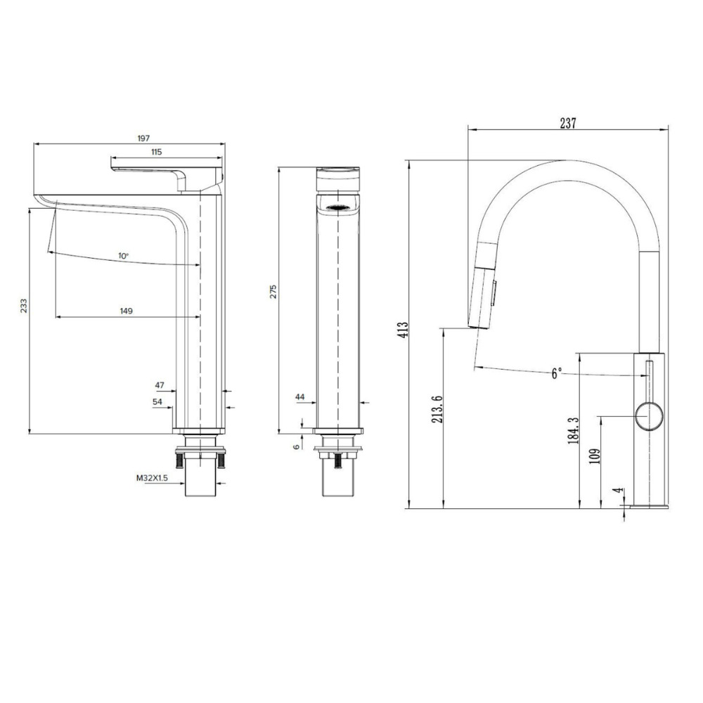 Caractéristiques du set mitigeur lavabo haut à levier, sans vidage, Swiss Aqua Technologies Brevis + mitigeur cuisine avec douchette extractible 2 jets, Swiss Aqua Technologies, chrome (SATBSBD285) :