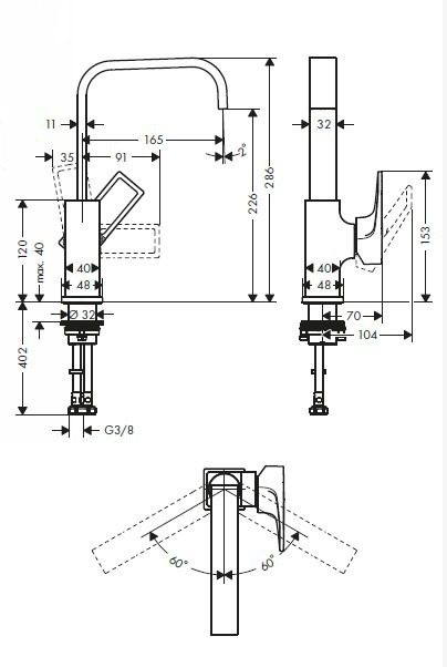 Hansgrohe Metropol 230 Mitigeur de lavabo poignée étrier, bonde Push-Open (74511000)